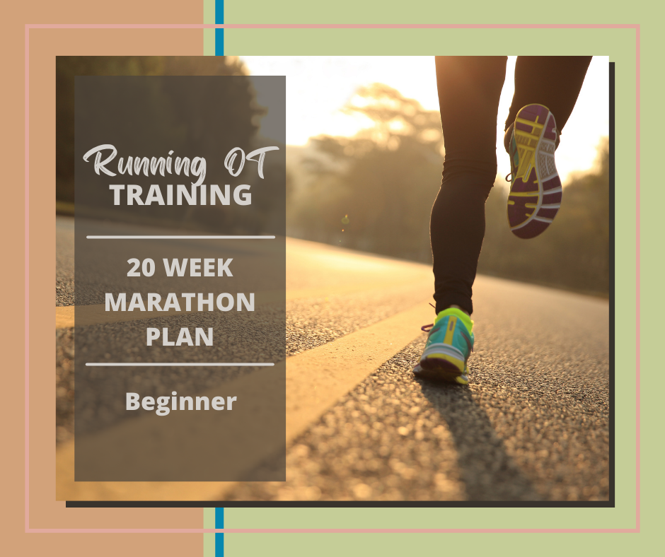 Lets get running! This 20-week entry level marathon training plan will build your volume and endurance to finish a marathon, 26.2 miles! This plan is designed for first-time marathoners and lower-volume runners and focuses purely on DISTANCE-BUILDING with an emphasis on EASY effort running to build your aerobic capacity and endurance. This plan starts with 4 runs per week + 1 cross-training session and builds to 5 runs per week. The starting weekly mileage is 16 miles perr week and peaks at 45 miles per week. The longest run in this plan is a 20 miler.